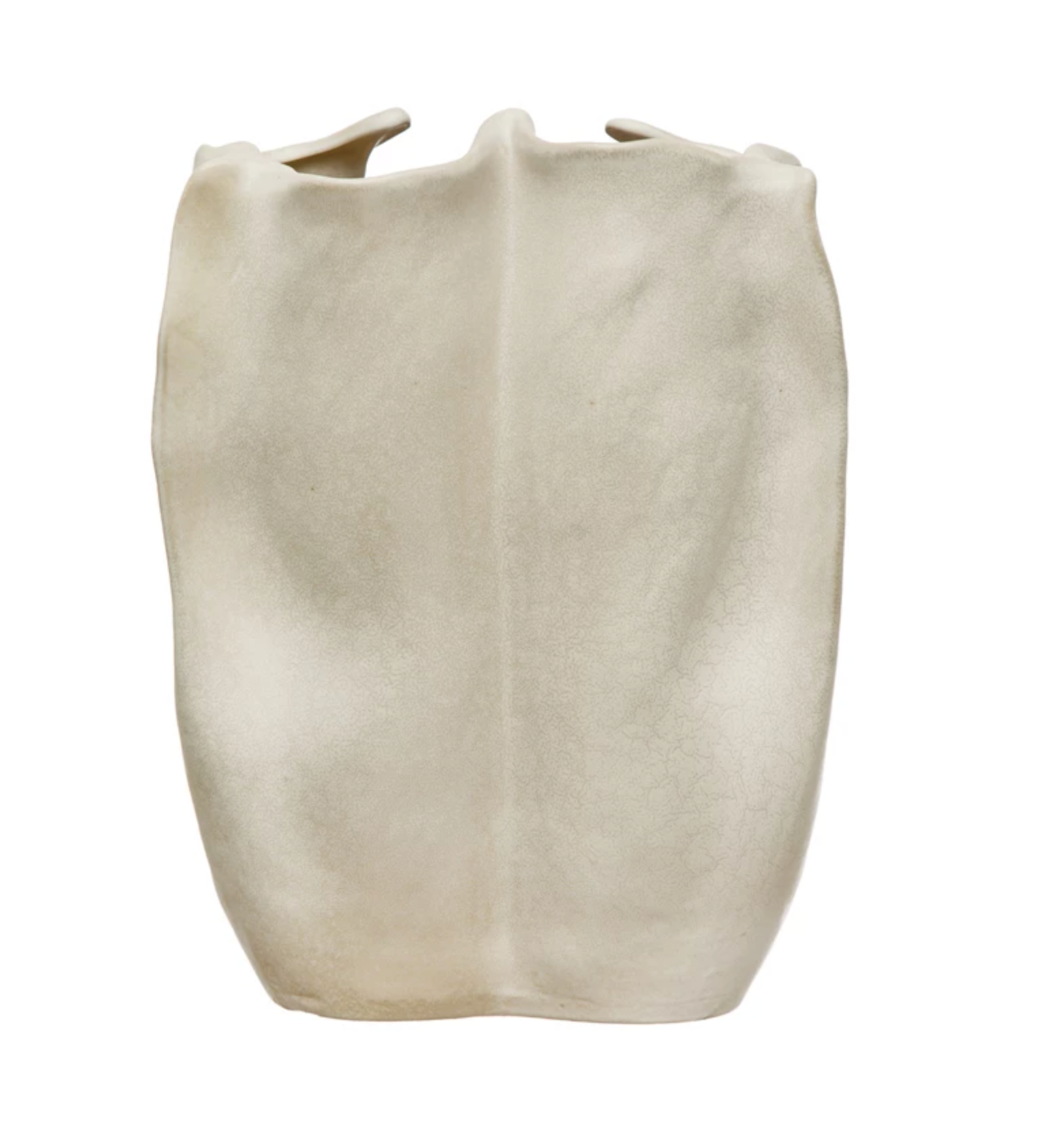 Stoneware Organic Shaped Vase, Matte Cream Color