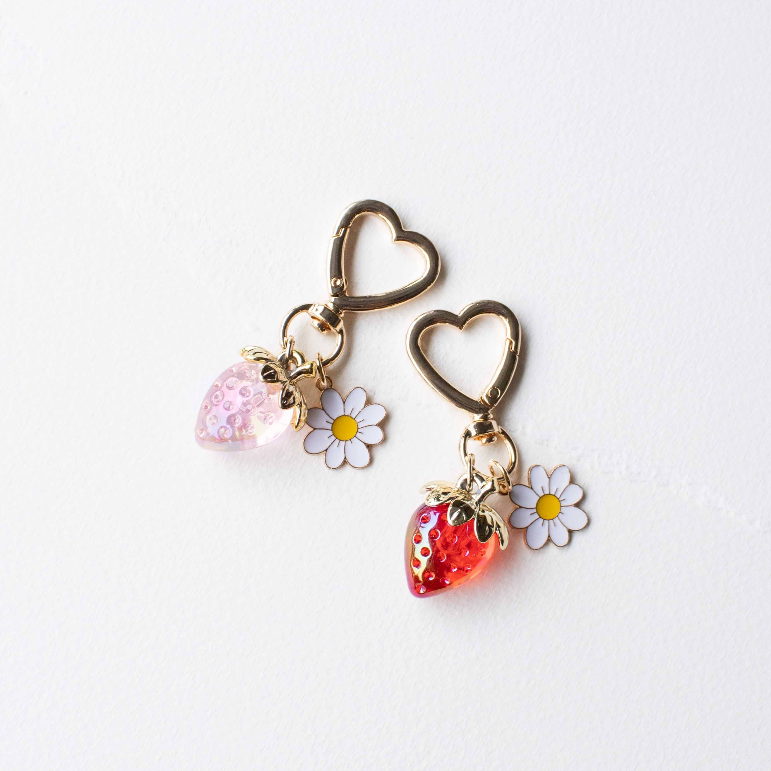 Strawberry & Daisy Heart Keychain Charm