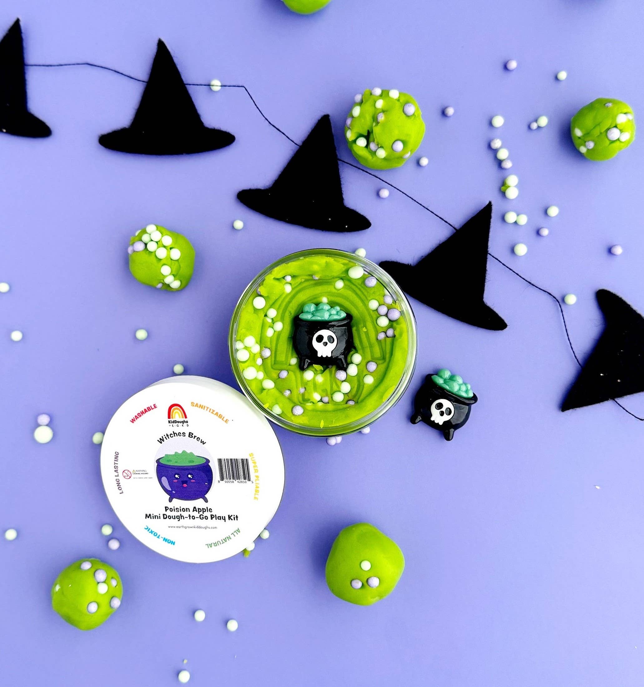 Includes: 4 oz Bright Green (Poison Apple) KidDough, Multi-Color Sensory Balls, Cauldron Charm