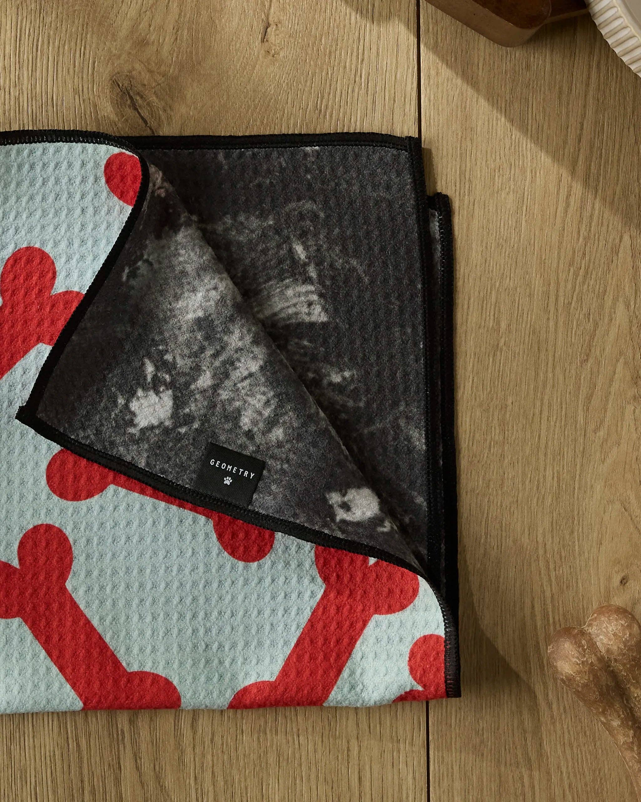 Paw Towel Life’s a little ruff. Let’s clean it up. Dirty paws are no match for our Paw Towel. Created from our signature Geoweave™ fabric for ultra-absorbency and quick-drying, this towel is your best friend’s new best friend. Compact and lightweight, it’s perfect for bath time, paw washing and on-the-go clean-up. * ♺ Made from post-consumer recycled materials * 18" x 18" * Single-sided print ... Pet Responsibly. With its natural softness and ultra-absorbent weave, our Paw Towels are guaranteed to be your new favorite companion (besides your doggy, of course!) The best part? They’re also friends to the environment. Our towels are created from post-consumer recycled products and manufactured using less water than traditional methods, minimizing our carbon footprint. And due to its innovative weave, high absorbency and quick dry time, you’ll wash it less often, helping to minimize yours.